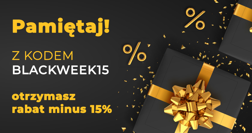 W koszyku wpisz kupon rabatowy BLACKWEEK15 , który upoważnia Cię do RABATU w wysokości 15%